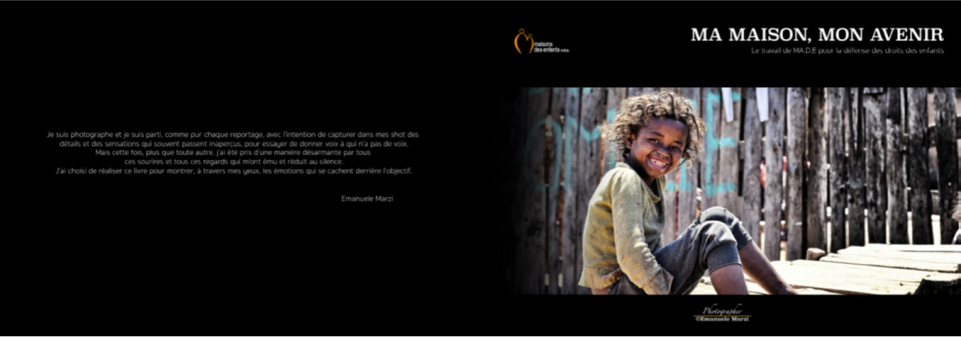 Emanuele Marzi, photographe professionnel voué au reportage sur les questions sociales en Afrique a créé pour MA.D.E. le livre de photos "MA MAISON, MON AVENIR": histoire par images du contexte dans lequel l'association opère et de son travail en faveur des droits des enfants.