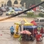 Pluie torrentielle à Madagascar, rivières rouges par les routes, mort.